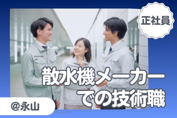 散水機メーカーでの技術職/設計・開発・現場対応など/CAD経験者/436~552万円/賞与5カ月/土日祝休み/転勤なし