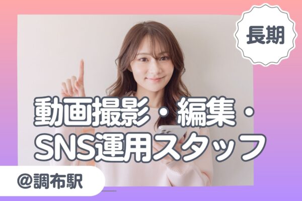 「動画撮影・編集・SNS運用スタッフ」Youtube・Instagram・TikTok/平日週3日~可/Wワーク・扶養内OK/調布駅前
