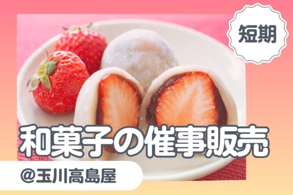 「いちご大福の催事販売」3/18~3/24短期/玉川高島屋/和菓子販売/交通費支給/販売・レジ経験者募集