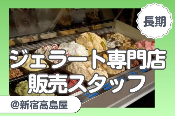 「新宿高島屋ジェラート店での接客販売」長期/月12日程度/1日7h/常設店勤務/OJTあり/販売経験者歓迎