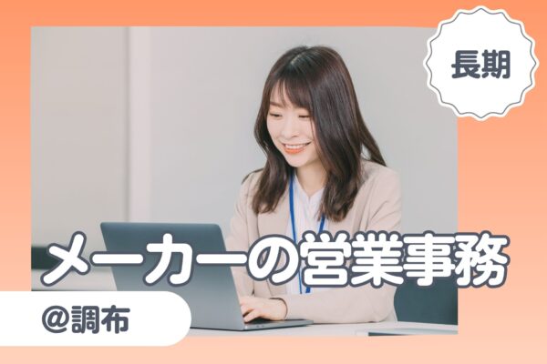 「営業事務」メーカー事務/営業事務経験者/残業少なめ/17時退社/社員登用あり/車通勤OK/調布