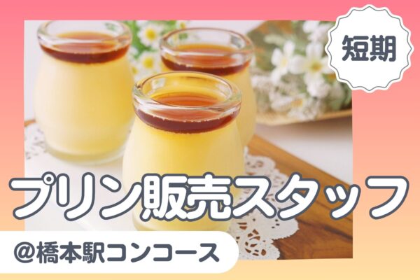 トップ>求人一覧>【4/23~4/26の4日間限定】通いやすさ抜群!橋本駅改札すぐ◎人気のプリン販売スタッフ/遅番勤務できる方歓迎★